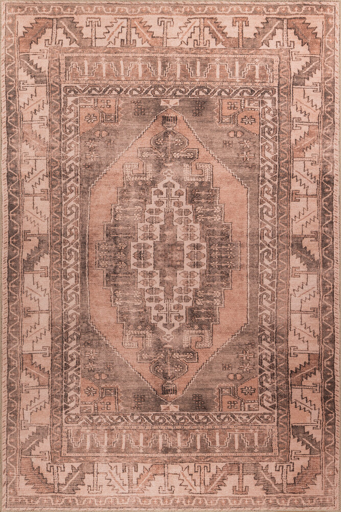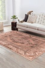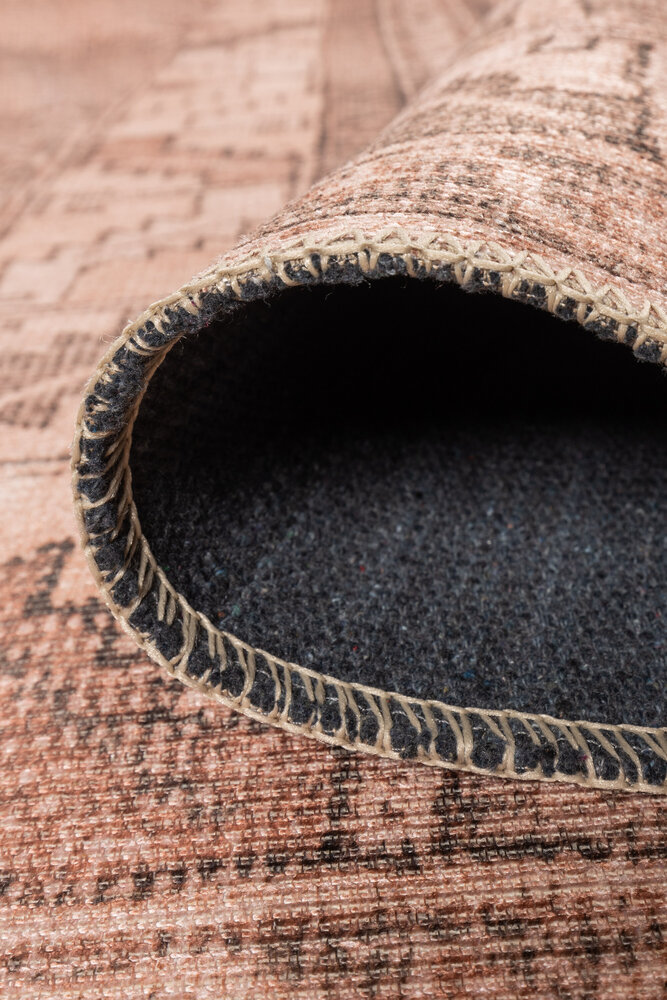 Vintage Patterned Woven Base Decorative Pink Rug