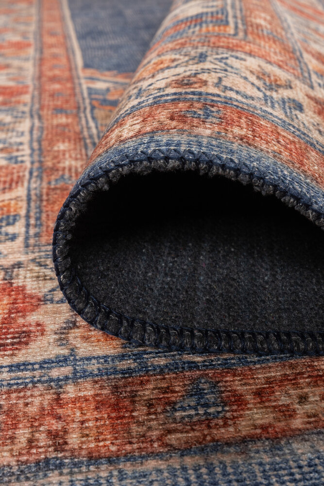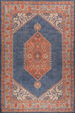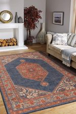 Vintage Patterned Woven Base Decorative Navy Blue Rug – 29